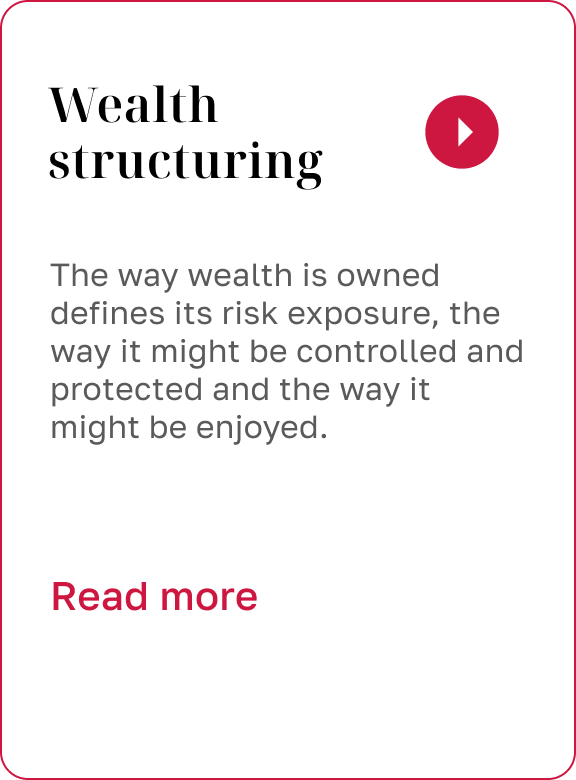 The way wealth is owned defines its risk exposure, the way it might be controlled and protected and the way it might be enjoyed. With the constant regulatory change, wealth structuring imposes significant burden on both wealth owners and practitioners but gains more importance at the same time.